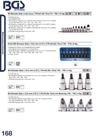 • Kraft-Bit-Einsatz, Antrieb Innenvierkant 12,5 mm (1/2"), T-Profil (für Torx):