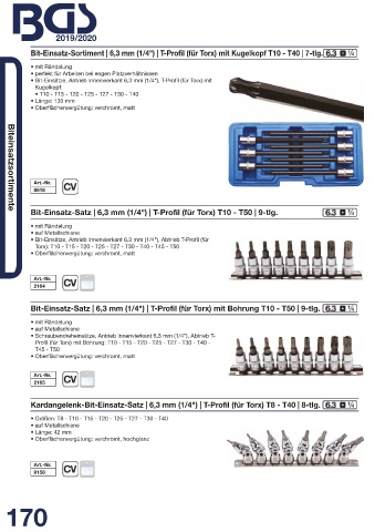 • Bit-Einsätze, Antrieb Innenvierkant 6,3 mm (1/4"), Abtrieb T-Profil (für
