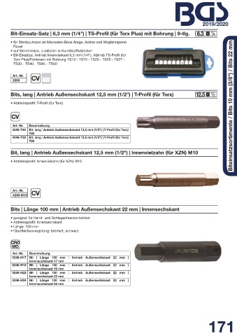 • Abtriebsprofil: T-Profil (für Torx) Biteinsatzsortimente / Bits 10 mm (3/8") / Bits 22 mm