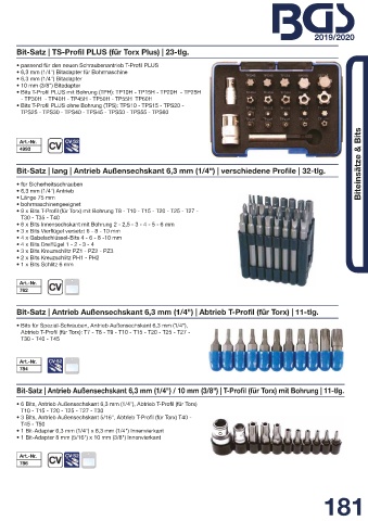 • 6 Bits, Antrieb Außensechskant 6,3 mm (1/4"), Abtrieb T-Profil (für Torx)