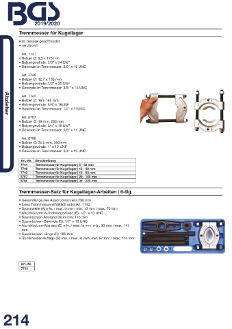 8768 Trennmesser für Kugellager | 39 - 225 mm