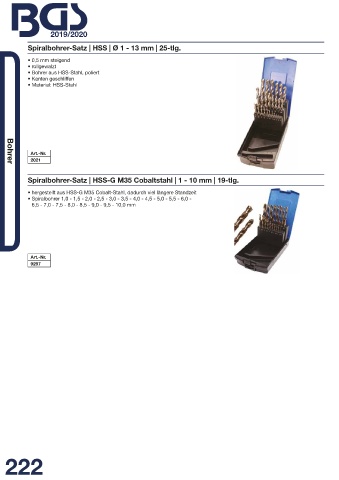 Spiralbohrer-Satz | HSS-G M35 Cobaltstahl | 1 - 10 mm | 19-tlg.