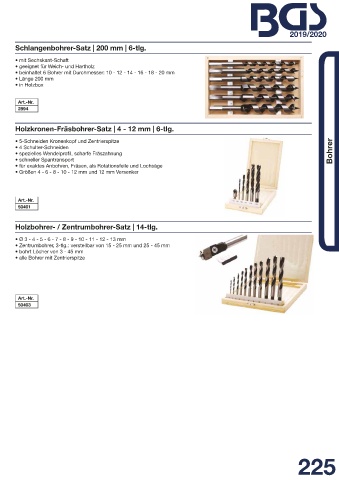 • Zentrumbohrer, 3-tlg.: verstellbar von 15 - 25 mm und 25 - 45 mm