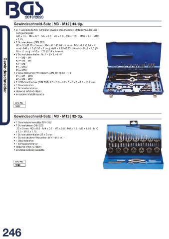 • je 7 Gewindebohrer (DIN 352) jeweils Vorschneider, Mittelschneider und