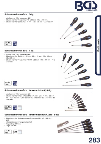 • Schraubendreher Schlitz: 4 x 80 mm - 5,5 x 125 mm - 6,5 x 150 mm -