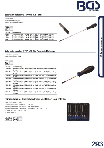 • Schraubendreher, T-Profil (für Torx): TX6 - TX7 - TX8 - TX10