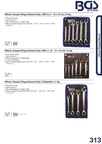 • offener Doppel-Ringschlüssel SW 8x10 - 9x11 - 12x13 - 14x15 - 16x18 -