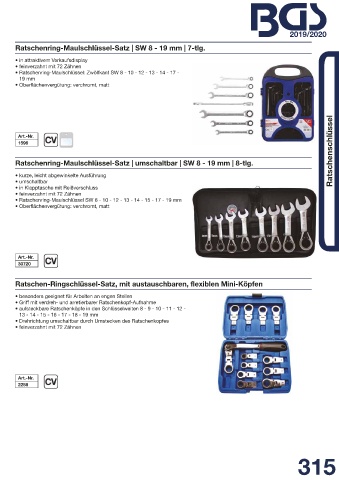 • Ratschenring-Maulschlüssel: Zwölfkant SW 8 - 10 - 12 - 13 - 14 - 17 -