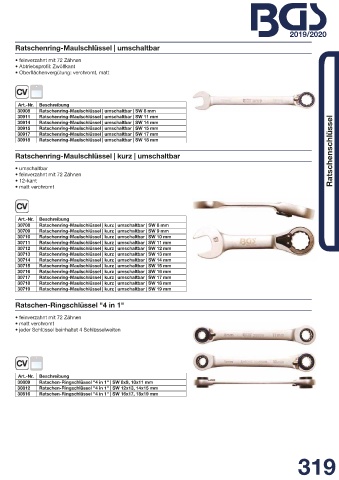30719 Ratschenring-Maulschlüssel | kurz | umschaltbar | SW 19 mm