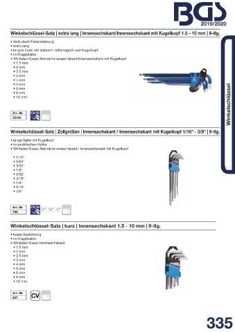 • Winkelschlüssel Abtrieb Innensechskant / Innensechskant mit Kugelkopf