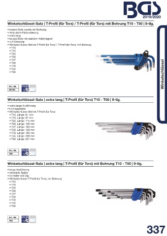 • Winkelschlüssel T-Profil (für Torx), mit Bohrung