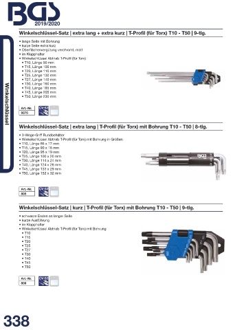 • Winkelschlüssel Abtrieb T-Profil (für Torx) mit Bohrung