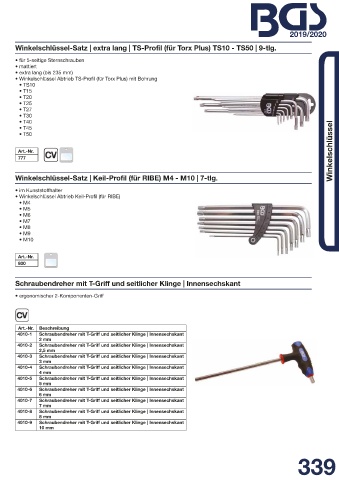 • Winkelschlüssel Abtrieb TS-Profil (für Torx Plus) mit Bohrung