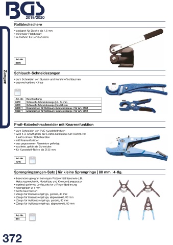 • zum Schneiden von Gummi- und Kunststoffschläuchen