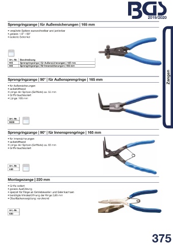 Sprengringzange | 90° | für Außensprengringe | 165 mm