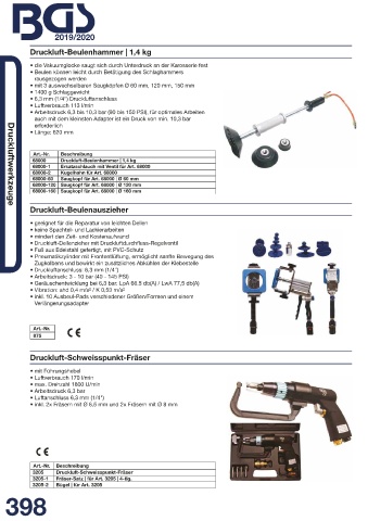 • Beulen können leicht durch Betätigung des Schlaghammers