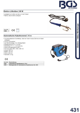 Automatische Kabeltrommel | 15 m Elektro- / Akku-Werkzeuge