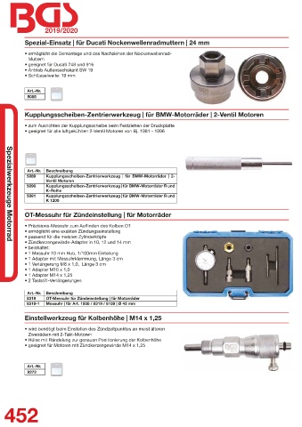 • Präzisions-Messuhr zum Auffinden des Kolben OT