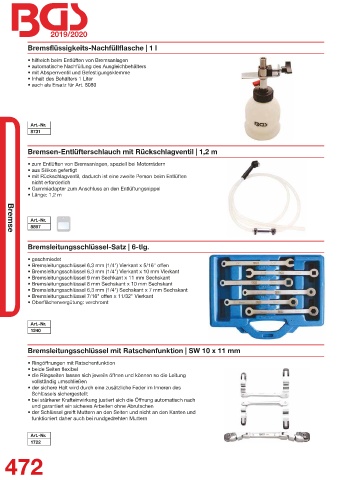 • Bremsleitungsschlüssel 8 mm Sechskant x 10 mm Sechskant
