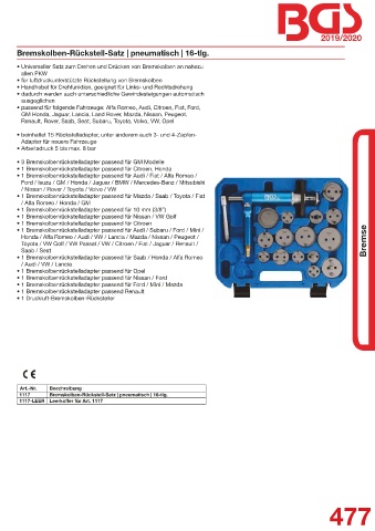 • 1 Bremskolbenrückstelladapter passend für 10 mm (3/8”)