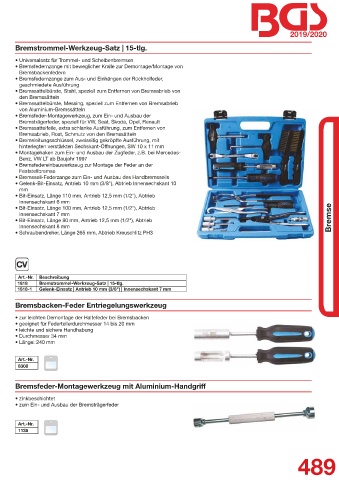 • Bremsfeder-Montagewerkzeug, zum Ein- und Ausbau der