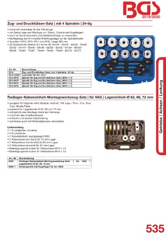 • zur Demontage und Montage von Silent-, Gummi-und Kugellagern