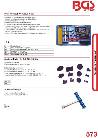 • 9 Ausbeul-Pads verschiedener Größen und Formen