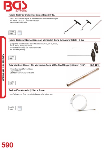 • Haken mit S-Form Klinge z. B. zum Abziehen von Wellendichtringen