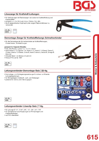 • für die Demontage der Schnellverbinder an Kraftstoffleitungen,