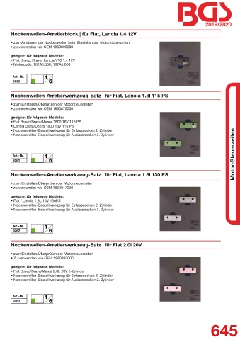 • zum Arretieren der Nockenwellen beim Einstellen der Motorsteuerzeiten