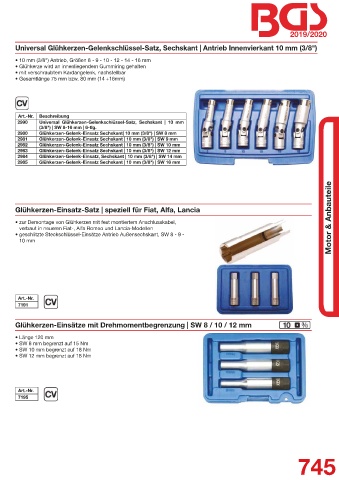 Universal Glühkerzen-Gelenkschlüssel-Satz, Sechskant | Antrieb Innenvierkant 10 mm (3/8")